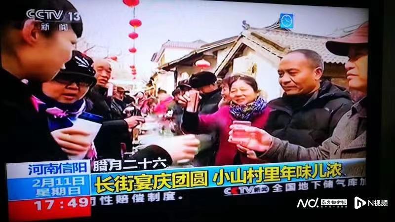 某年春节前乔叶(左二)和村民吃长街宴,进了央视新闻的镜头