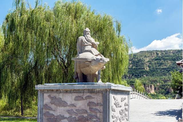 老子姓李,名耳,又名老聃,是东周人。衰落,天下大乱,便辞官西行了。尹喜和老爷子是老相识,一见面分外亲热。尹喜把老子留在府内说:“你眼看就要退隐,今后恐难再见,请你再为我写篇文章吧!”老子推辞不过,就给他写下五千言的《道德经》。写完之后,骑青牛过函谷,西去“化胡”流沙道,从此再没有音讯。为了纪念老爷子,尹喜就在棺前建了一座望气台。“紫气东来”的典故就出于此。有诗为证:“东来紫气半谈空‘得宝只堪哄牧童’毕竟虚无成底事,瓦砾一片太初宫”。