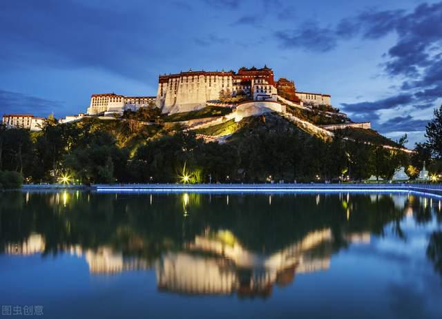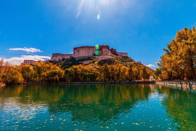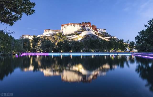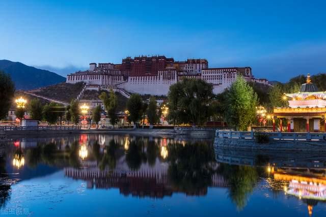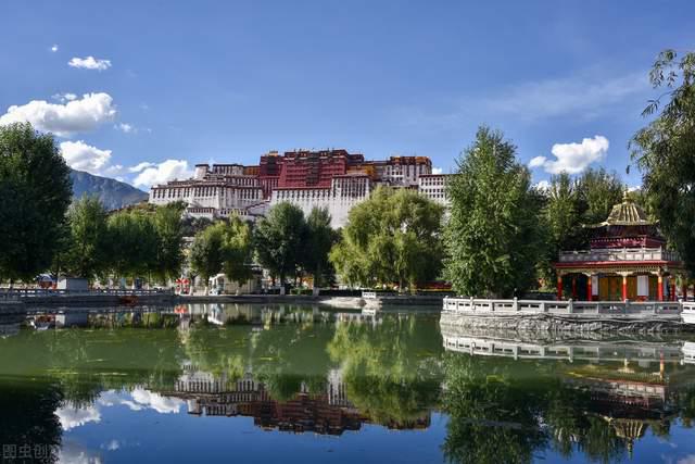 宫殿后面,是宁静美丽的龙王潭公园。公园里新种的草坪犹如绿色的地毯,鲜花点缀其间,园内绿树成荫,古木参天。林间一池湖水,碧波荡漾,倒映着布达拉宫的背影。每到冬季,成群的红嘴鸥回归潭中,翩跹翻飞,自在一景。潭中有一小岛,岛上建有龙王宫,所以取名为“龙王潭”。过去,这里是布达拉宫的后山花园,每年的藏历四月十五日——佛祖释迦牟尼的诞生、成道、圆寂纪念日,全体僧俗官员及贵族男女都来此划船戏水,举行旱季祈雨仪式。