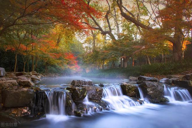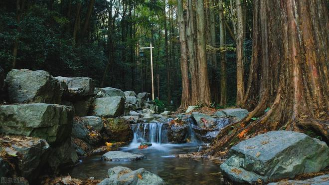 清末学者俞樾所描绘的这一景致,是距杭州西湖仅十里之遥的"九溪十八涧"景区。他对白居易赞冷泉"最余杭而甲灵隐"不以为然,他说,"九溪十八涧乃西湖最胜处,尤在冷泉之上。"并且别出心裁,作叠字诗赞九溪:
