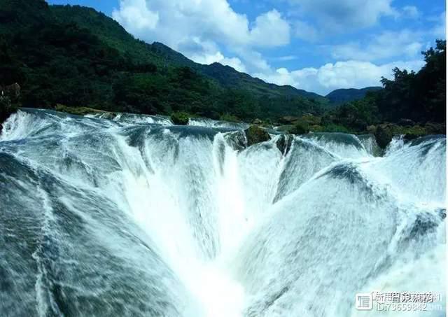 听着这优美动听的故事,我们来到了瀑布左侧的水帘洞。入得洞内,温度陡然下降,虽然已是五月,仍感阵阵凉气袭人。洞顶不断往下渗水,我们浑身上下无干处。这134米长的洞内有6个洞窗,5个洞厅,3个洞泉和1个洞内瀑布,相当绝妙。我们在洞窗内透过层层水帘向外望去,青山翠竹尽在朦胧中,道道水柱翻滚而下,如石破天惊。