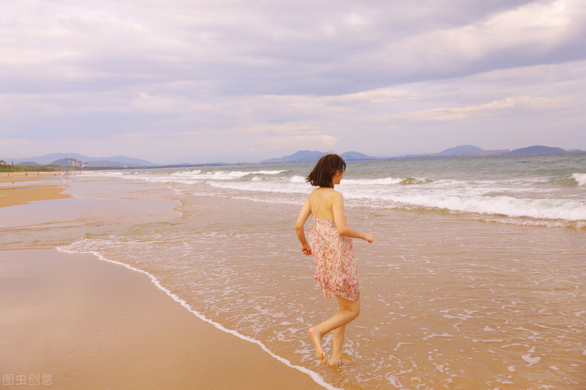 尽管三亚的太阳厉害,但天气绝不会有内地如入蒸笼般的燥热,只要有绿荫,便让人觉得凉爽。因为三亚三面环海一面靠山,大海对气温的调节作用,使三亚的暑热来得快也退得快。因此,三亚的黄昏是一天中最凉爽最舒服最动人的时候。我在沙滩与大海的交界处散步,微风吹在脸上,凉丝丝的,拂过清秀的短发,飘起几根乌黑的发丝。温海水轻轻地打在脚上,仿佛是在为我按摩。海面上,有人在游泳,身上套着五颜六色的救生圈;浪潮大一些时,有人脚踩着浪板冲浪;还有的开着摩托艇,在海上飞驰。