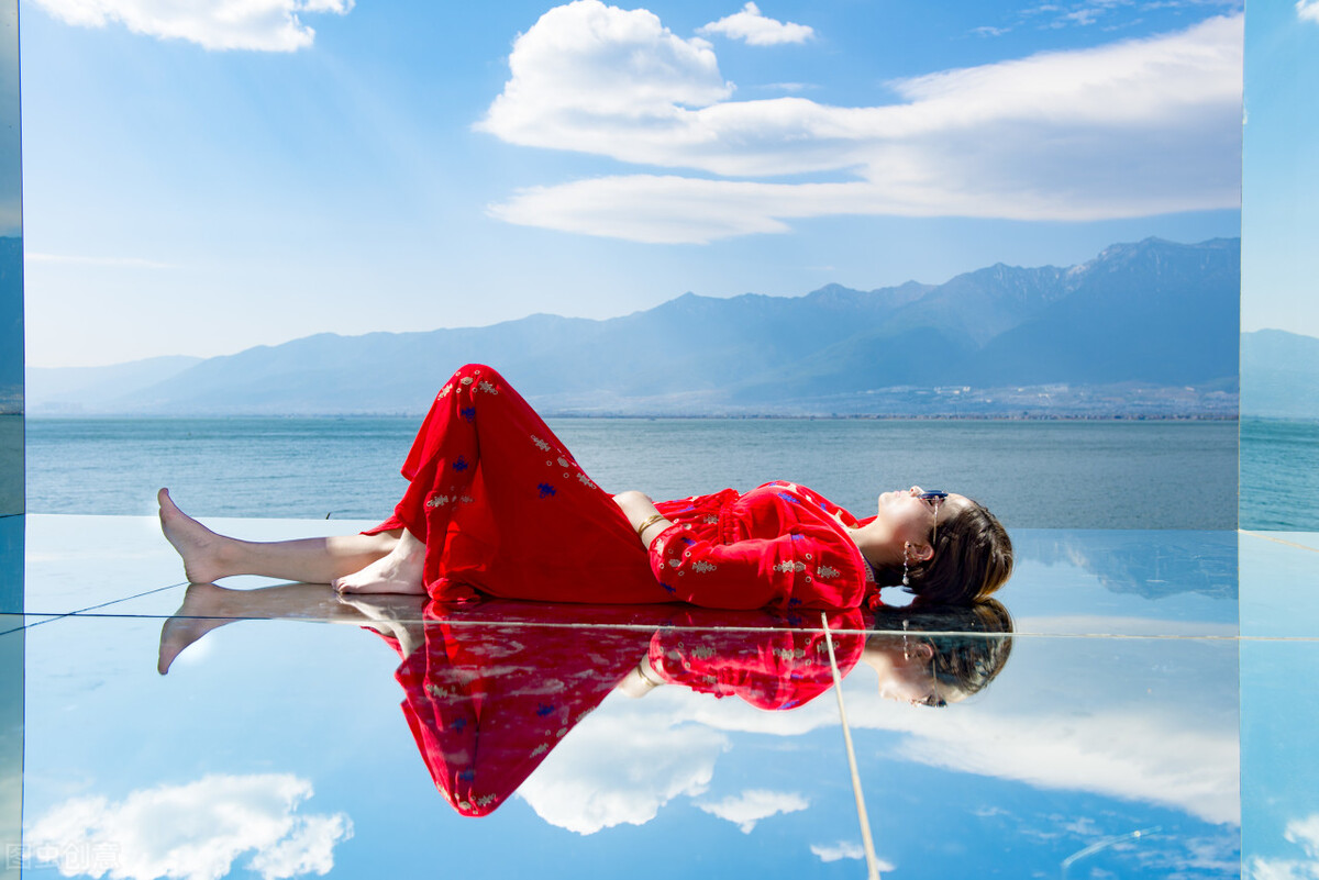 鹤云、三阳、兰峰、雪人、应乐、观音、中和、龙泉、玉局、马龙、圣应、佛顶、马耳、斜阳,而其间的十八溪,像一条条银链子,注入洱海。或者,更像是十八根琴弦,拨弹着洱海的歌谣。至于三塔,那也是洱海衍生出来的奇观。从唐朝开始,就像三支箭镞,深深地扎进洱海畔,任凭风风雨雨,依然直插云天。洱海湿润的风,日日夜夜吹拂着三塔,因而三塔虽然已经一千多岁了,依然傲然如初,俯瞰着遥远而临近的洱海。也只有这时,洱海的波浪,在轻轻拍岸,或者,猛烈地击打着沙滩。其实,在苍山洱海的天地间,哪怕一草一木,洱海都滋润过,抚慰过,就像滋润自己的孩子,就像抚慰自己的恋人。