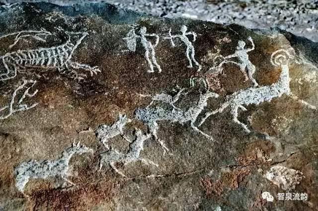 贺兰山岩画的内容除各种各样的人面形外,还有一些表现了古代北方游牧民族生活的欢乐场景。