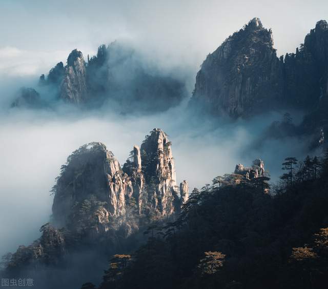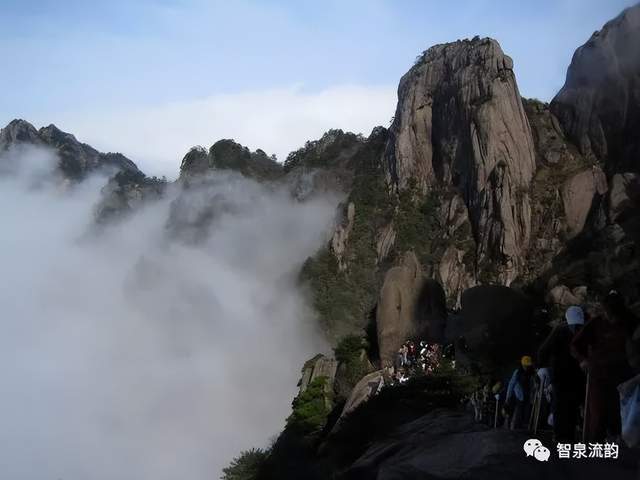 黄山最为瑰奇伟丽的还是云海。我们登山的那天,正是雨后初晴,碧空如洗,巨壑深谷,烟云弥漫,浩瀚无涯,宛如波涛起伏的大海。这里的奇峰怪石,青松流泉,由于云海的铺盖,更加动人而富有诗意。黄山有五海,可以在不同的地方观看。玉屏楼可观东海,清凉台可观后海,东海门可观东海,排云亭可观西海,光明顶可观天海。云海五座,如五大洋,汹涌澎湃。被雪浪拍击的山峰,或被吞没,或露顶巅,沉浮其中。风急了,西海门前,雪浪滔滔。而排云亭前,好比一座繁忙的海港,码头上装卸着一包包柔软的货物。我多么想从这儿扬帆出海去,可是暗礁多,浪又这样险恶,准能撞断我的帆桅,打翻我的船。