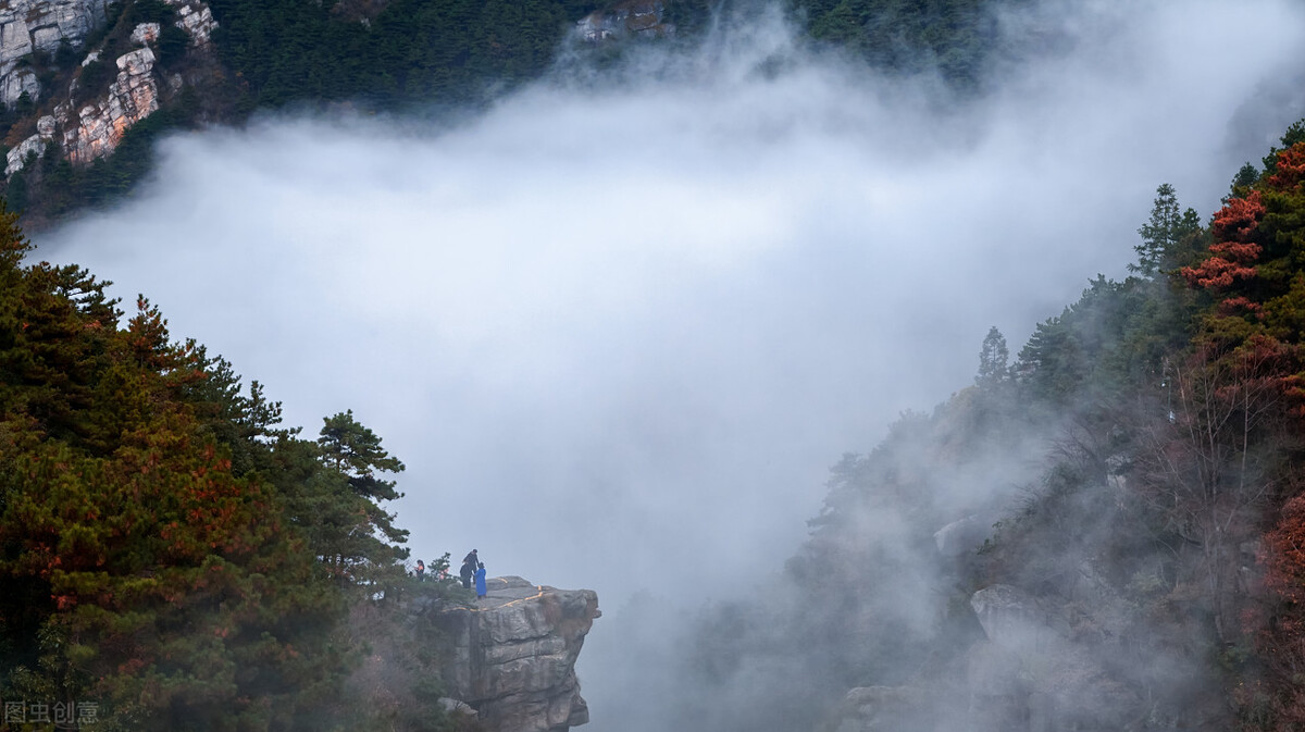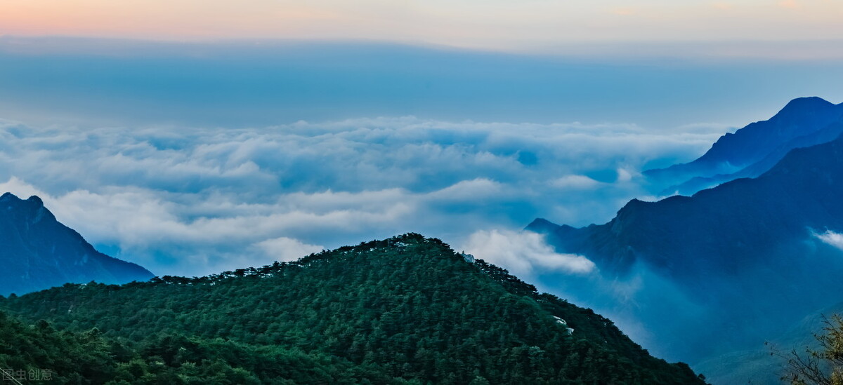 含鄱口海拔1211米,左为五老峰,右为太乙峰。岭前的“含鄱亭”是欣赏湖光山色最合适的地点。适逢雨后初晴,空气分外清新。我们在晨光微曦之际,看到一轮红日喷薄而出,万道金光,云岫尽染,我们的胸襟顿时变得如这大自然的蓝天白云一样开阔。不一会儿,山谷中升起了团团的云絮,如纱缕,似棉绒,逐渐汇合,云雾越积越厚,形成了茫茫的白色云海,山峰树木江湖都被云海淹没了。我脚踩云端,飘飘欲仙,只疑山是瑶台,人是云中仙子,多少尘世间的郁闷积垢,都被这白云滤洗得干干净净了。