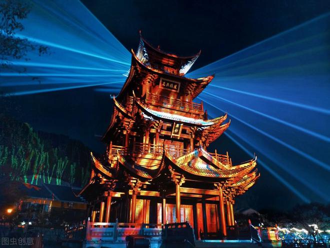 正脊中央矗立着造型优美、玲珑秀丽的重詹楼阁式脊饰。楼阁两边为造型逼真、栩栩如生的驼珠奔狮,这些华丽的脊饰,更使楼貌增辉。主楼的垂脊与戗脊亦由透雕花卉的脊筒组成。脊端饰有造型生动的张口或闭口的垂兽和戗兽。戗脊外的岔脊,由筒瓦扣合而成。并用一微微翘起的勾头瓦代替岔兽。次楼脊吻的构成情况基本与主楼相同。整个楼顶屋面曲线缓和,楼檐层层叠叠,翼角高高升起,婀娜多姿,翩翩欲飞。