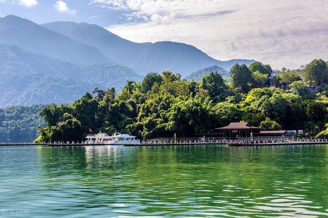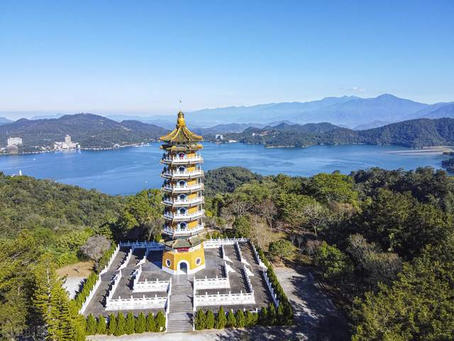 据导游介绍,抗日战争时期,被日本侵略者从中国劫走了的部分玄奘遗骨,1966年从日本取回存于狮头山开善寺,继而移至日月潭玄光寺,最后存放于玄奘寺。玄奘寺前立有一块巨石,背对日月潭,上面镌刻着“日月潭”三个鲜红的大字。这里是游客们到了“日月潭”最好的证明。大家纷纷排队在此留影。凭潭远眺,湖光山色尽收眼底,让人心旷神怡。