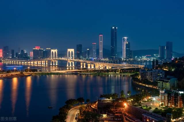 我们在导游小姐引领下,登上了位于南湾新填海区D区域1号地段的澳门观光塔。站在塔顶向下俯瞰,只见澳门半岛和氹仔、路环两岛犹如莲花漂浮在碧绿的海面上,东西望洋山、中国银行大厦、葡京酒店等错落有致地分布在远方。过往船只像点点繁星一样,经过两条乳白色的跨海大桥,在澄碧的海面上划出白色的曲线。