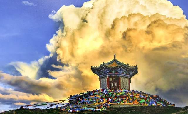l300多年前,文成公主入吐蕃时经过这片赤岭,登临山顶东望长安。在苍茫的汉藏古道上,她毅然抛下了日月镜。镜子一分为二,化为金日银月,“赤岭”因此改名“日月山”,山顶建起两座遥遥相望的日亭和月亭。千年前旅人的足迹早已消失在茫茫荒野中,日华与月影却依旧当空,日也未换,月也未改。