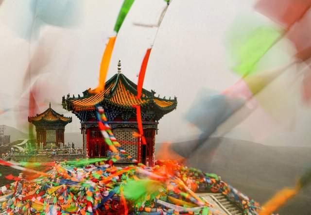 日月山双亭 在日月山口,有为纪念唐代文成公主进藏联姻而建的日月二亭。唐贞观十五年(公元641年),宗室女文成公主远嫁吐蕃赞普松赞干布,由长安去拉萨在这里停留,留下很多历史佳话和神奇的传说,给日月山增添了一层神秘色彩。开元二十一年(公元733年)确定唐朝和吐蕃以赤岭分界,并立界碑,成为民族友好的象征。20世纪80年代中期修建的日月二亭,成分立垭口两侧,建筑精巧、辉煌。日亭内有青海省人民政府撰文刻制的“文成公主进藏纪念碑”,记述了文成公主和亲始未及历史功绩。亭内还绘有壁画,再现了文成公主进藏的历史面貌;月亭有珍贵的“唐蕃赤岭分界碑”和文成公主在西藏传播中原文化,促进西藏文化艺术与生产成就等方面的壁画。山口中立有1950年10月1日由青海省军区司令员贺炳炎、政委廖汉生树立的“日月山修路纪念碑”,记载了人民解放军修建青藏公路的业绩。