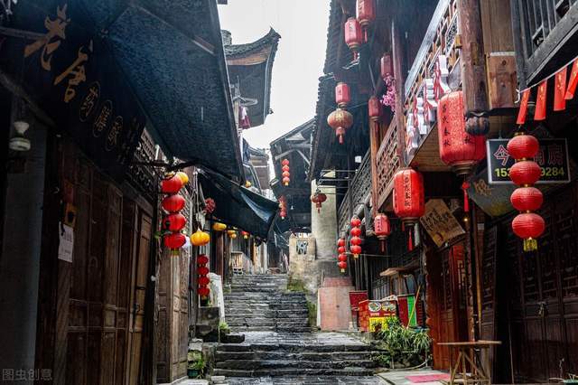这个石岩洞很久以前能够容纳千人,后经千百年的水涨水落,被大量淤泥积压成现今之样。据当地的王姓谱书记载,很久以前,有一批人为避秦朝战乱,一路沿沅江涉水而上,历经千辛万苦,来到这个石洞歇息,见洞内有一些长发赤脚,披兽发,发声如鸟兽语的人。这些人就是早期居住在芙蓉镇的土家先民。这拔人见这些土家先民勤劳善良,极易相处,便同他们久居下来,繁衍生息,一起经营了这个地方。为了方便当时原始的生活和生产,便合力开凿了一条古栈道。古镇风情是从石板街开始,这里有保存完好的五里青石板街,两边是板门店铺、土家吊脚楼,一路高低错落、曲折蜿蜒而行,将人带到酉水岸边的渡船码头。