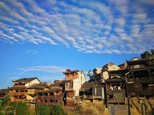 土家人过年,至今还保留着给果木树喂年饭的古老而又有趣的传统习俗。小巷是古镇的经络血管,砖石黛瓦筑就了小巷的古朴和清幽。静默无声的老墙诉说着两千多年的历史传奇,滑溜泛青的石板闪烁着古老崭新的记忆。岁月把一块块层层叠叠坚硬的青石板磨成高低有致的闪光鳞片。跌宕起伏的古巷,似一条头西尾东的青龙,扎进酉水,翻腾岁月。五里长街,竖着的琴键,每一级台阶奏出铿锵的音符,每一个转拐处演绎九曲回肠的故事。一幕幕传奇,一出出大戏,没有谢幕,只有高光,代代传承传唱。溪州铜柱是古镇的脊梁,嫣红斑驳、雄风拂槛。