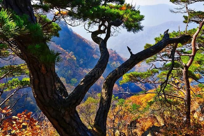 五彩湖放排,撑一支竹篙,悠闲自在。“雄狮震岳”,镇守着关东大地,“寿星树”是一棵已有500余年高龄的老曲柳,俗说寿星树上摸一摸,能活七十多,寿星树上趴一趴,能活八十八,寿星树上搂一搂,能活九十九,如果俺又摸又趴又搂的,也成老寿星了!只羡慕那夫妻树,一棵粗壮的曲柳和一棵身腰纤细的榆树相拥在一起,缠缠绵绵,卿卿我我。可笑的是“第三者插足”,两棵大树间愣挤出一棵小树,活脱脱的“第三者”。顺着山谷拾级而上,转心湖、晶帘瀑布、龙门峡。。。。。。步随景移,景随步走,一步一景包容着大山的神秘内涵和博大精深的迷蒙,令人流连忘返!关门山景区位于本溪水洞南十三公里,它有三道门;北门,在小市方向,双峰对峙,中间拱桥相连;南门,在去汤沟的岭顶,公路从中穿过,十分险要;中门,在深谷河道中,“双扉”夹水,宽只二十余米,为兴修水库的天然门柱,有人把关门山风景誉为“小江南”,“赛黄山”,说它有五美:山美,陡峭,俊秀,似一簇簇盆景;树美,树木种类繁多,特别是秋天的枫叶,冬季植根于峭壁上的苍松,非常壮观;水美,汤河穿过山谷,汇集小溪,飞瀑,“夺门”而出,似来自于天际;花美,天女木兰,山杜鹃,漫山遍野;云美丽,清晨雨后,山谷中云雾缭绕,如披轻纱,分外妩媚。历代文人多有诗篇赞颂,许多美术工作者,经常到这里写生、作画。