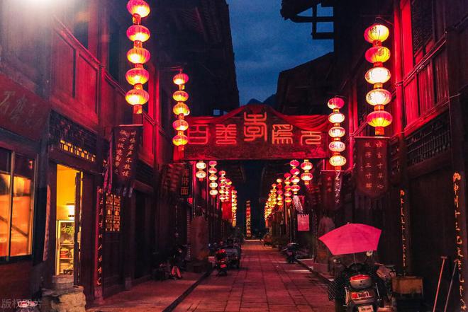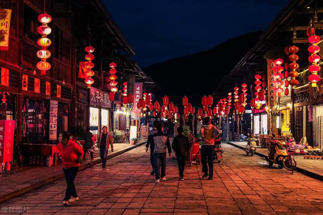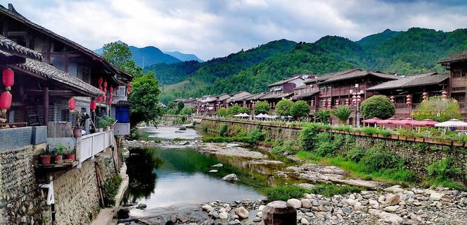 一条金溪河从镇中心流过,就有了新街老街之说。一座画舫式的凤飞桥将两岸连为一体。不论北边凤凰山下的新街还是南边龙池山下的老街,都是年代久远的紫红色木结构铺面房屋。逶迤的金溪河水被引入老街,一条纯青石板砌垒的小水渠日夜不息的细流十分清澈,潺潺涓涓,五彩的小鱼儿在水中自由徜徉。人们在屋檐即可垂钓,颇有几分江南水乡情调。线角分明的青绿色石板铺就的街面,与青瓦红木街屋相映成趣,给游人视觉带来震撼。
