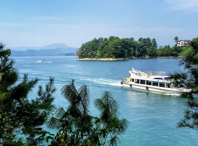 湖水似一条条碧蓝的丝带逶迤迂回在群岛之间,水天一色中,那一座座小岛如一颗颗翡翠洒落湖面,让你分不清楚是湖水染绿了小岛,还是小岛染蓝了湖水,眼前一切都是那么自然、亲切、和谐,似诗又似画。陶醉在湖光山色的胜景中,我的思绪已随湖水漂向了很远,如果能抛开世间一切烦恼,隐居千岛湖某个精致的小岛,早看晨雾,暮看晚霞,春观百花,秋赏红叶,享“ 落霞与孤鹜齐飞 ,秋水共长天一色 ”的妙曼生活,那又是人生怎样一种境界?