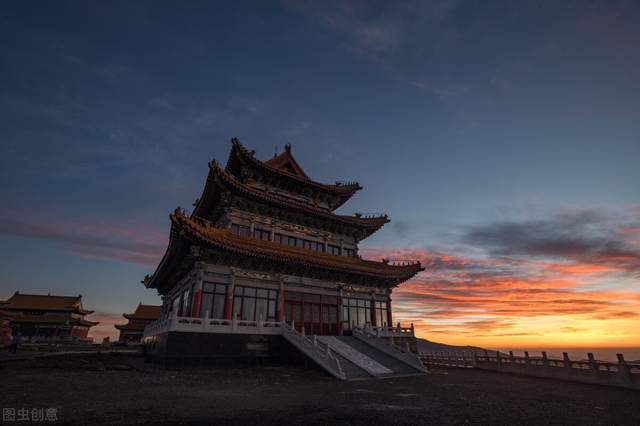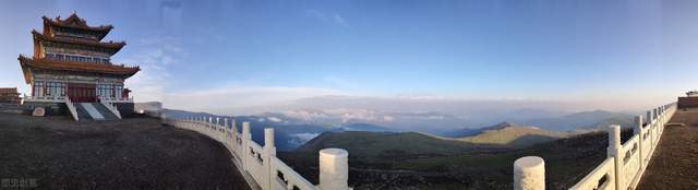 我们又登上西台绝顶,往西看,近处是闭魔岩,远处是雁门关。从西台北面下山,就到了维摩阁。阁随山势建造,柱子长短不一,有的柱子不用木头,而是用石柱。阁中有万佛阁,佛像不下万尊,全都金碧辉煌。