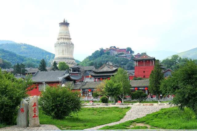 台怀镇是五台山的中心,位于台怀盆地中,这里一带青山翠壑,一条青水河水声潺潺。盆地东南凸起小山峰,据说好似释迦牟尼修行的灵鹫山,故名灵鹫峰。众多佛寺在灵鹫峰南坡因山顺势而筑,直到山顶。站在台怀镇四望,只见塔寺林立,共有14座主要的寺庙坐落在这方圆5平方公里的范围内,其中显通寺、菩萨顶、殊像寺、罗睺寺和塔院寺最为著名,为“五大禅处”。
