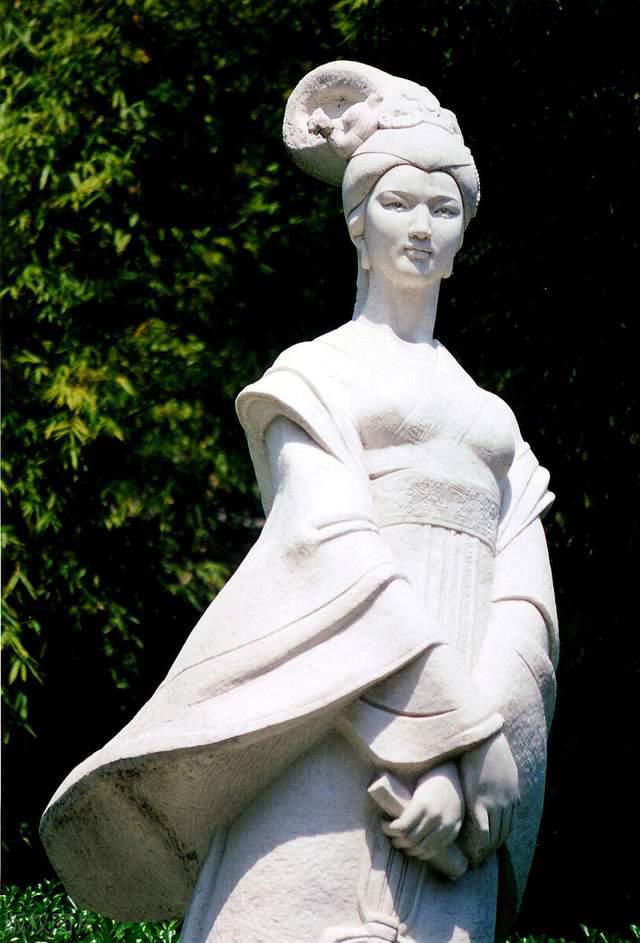 我们的车子越过香溪上空的铁索桥,沿着九曲十八弯的盘山公路,左盘右旋便到了昭君村。我们沿着新修的曲径长廊,在一位像昭君一样俊美的村姑陪伴下,捷足先登上了抚琴阁,此时此刻,我的思绪翻涌,仿佛看到了一幅图画:淡淡的云,轻柔的风,朦胧的月色,冷清清照着汉元帝的后宫。肌肤微丰,身材适度,一双又黑又大的星眸,在细嫩若凝脂的脸盘衬托下,显得光彩照人的王昭君,正怀抱琵琶,轻轻地弹着,那沉郁悲伤的乐曲,如泣如诉,叫人心碎……