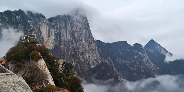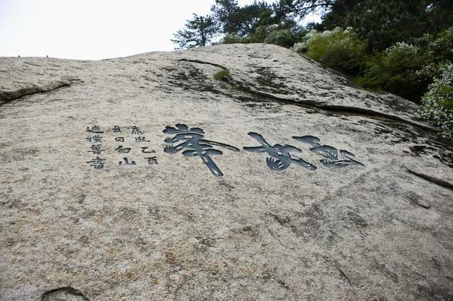 上至“龙口”,我们借着手电灯光,见崖上镌有“韩退之投书处”和“赵文备先生百岁笑韩处”等字样。相传唐朝文学家韩愈至此,被吓得胆颤目眩,丧魂失魄,放声大哭,连所带的书籍都抛落了。而赵文备到此,闻则大笑,讥讽韩愈胆子太小。清代李柏至此曾作诗曰:“华之险,岭为要,韩老哭,赵老笑,一哭一笑传二妙。李柏不哭亦不笑,独立顶头但长啸。”明万历年间袁宏道有诗云:“瑟瑟秋涛谷底呜,扶摇风里一毛轻,半生始得惊人事,撤手苍龙背上行。”