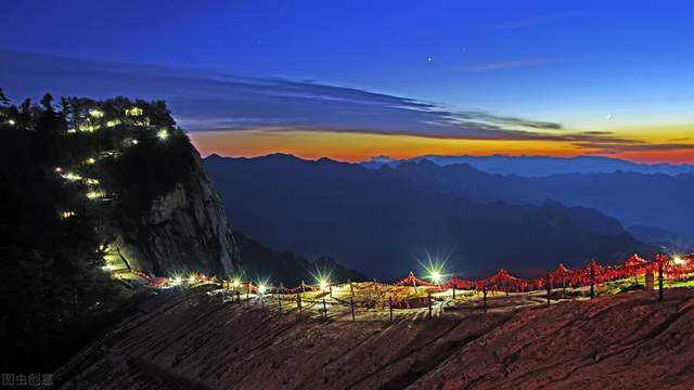 据古人记载,华山有三麓,玉泉院为山之麓,青柯平为岳之麓,金锁关为峰之麓。金锁关亦名通天门。杜甫《望岳》诗中的“箭火通天有一门”即指此。我们到达金锁关的时候,已是凌晨3点多钟,借着月光,但见松林蔽天,地势险要,顿觉气温骤降,凉气袭人,真乃“过了金锁关,另是一重天!”