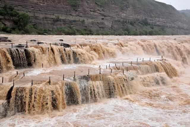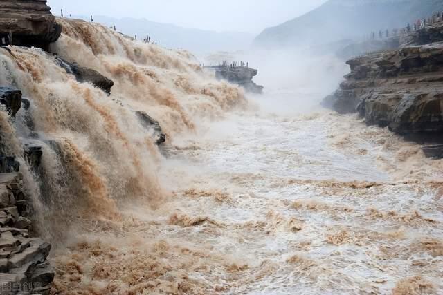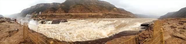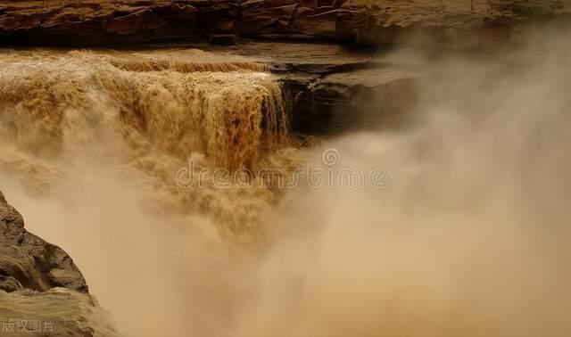 黄河之水并非从天上来,而是从地上来。你看不见黄河之水远上白云间,只见黄河之水的源头就在不远处的山口。山口的黄河水看似波平浪静,缓缓地从山间走来。两山就像两条长鞭,驱赶着黄流渐渐收紧,犹如挥动长鞭将一群放荡不羁的野马收拢。河床像巨人的臂膀,力挽狂澜,紧勒浪头,骤然下陷,形成一个巨坑。
