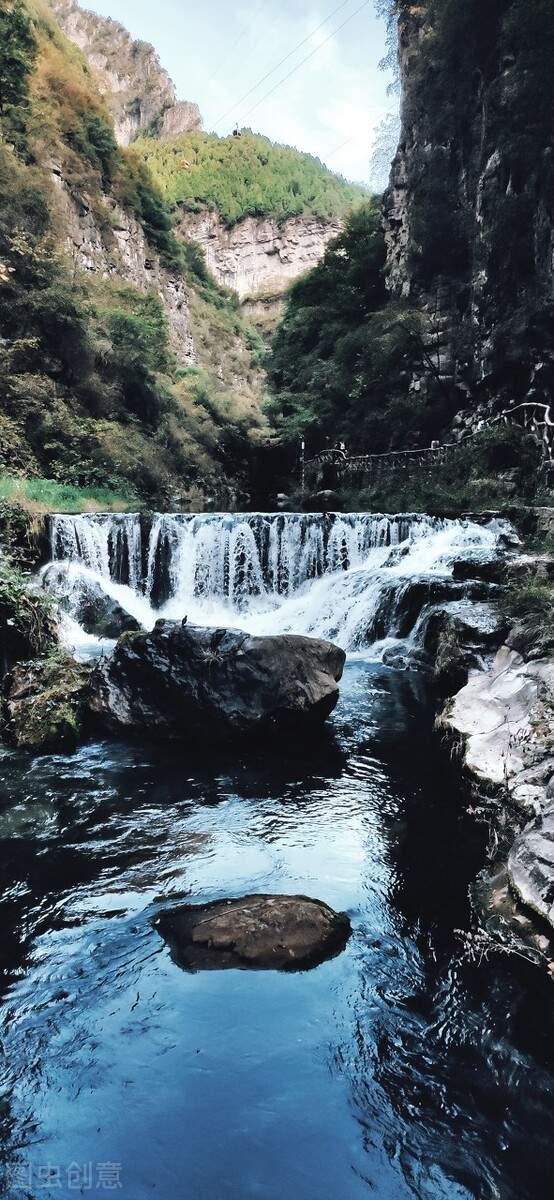 环顾两岸,皆是壁立千仞,对峙高耸,直刺天穹,这里的山恐怕秃鹫也飞不上去的。在峭壁间有那苍松翠柏绝处逢生,悬空横刺,枝繁叶茂,苍翠欲滴,好似碧绿绒毯披在崖壁之上,让冰冷坚硬的崖壁郁葳蕤,充满生机。