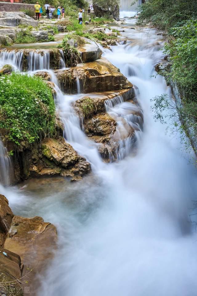 八泉峡峡谷里的水奇幻独特,各种泉水汇成的瀑布称之为落水;水落而成为了流水,二者相依相辅,浑然天成。除了这,峡谷里还挂满了大大小小的瀑布,有的从天而降蔚为壮观,有的飘飘洒洒,有的层层叠叠如泉水叮咚。八泉峡的水,真是千变万化,千姿百态,澎湃声、哗哗声、汩汩声、鸟鸣声、叮咚声,组成了一部山水交响曲。