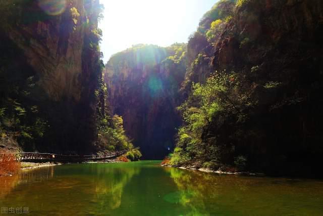 一条碳酸岩石组成的悬崖绝壁,最长达8公里,高达800米,蔚为壮观。山托水,水映山,这里云雾缭绕,群峰时隐时现,景观随视角而变换,呈现出朦胧的美,与幽深曲折的峡谷、神秘莫测的溶洞相辅相成,大峡谷将山的静美与水的动态美溶为一体,这种大自然的动静结合,衍生出了美学价值极高的地貌景观,体现了幽美的意境,给人一种神秘的感受。