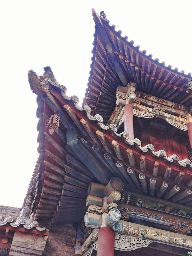 我仰望着这空中楼阁,不觉两腿发软,顿觉神飞。最后只好鼓足勇气登山入寺。这才体会到“悬空寺、半天高、三根马尾空中吊”这句当地民谣的分量。寺名“悬空”,名副其实。古寺上方岩石副仄,呈力压万钓之势;下临河谷,位置最高处距离水面只有50余米,我已听到了金龙峡的滔声,悬空寺也在这滔声中颤抖着。这里山壁光滑,如刀劈斧削,间有小丛植物自岩石缝中横生出来。整座寺庙如天造地设一般,镶嵌在山体之中。正如古诗云:“上有千丈崖,下有万仞山。伸手拂明月,袖带白云还。”