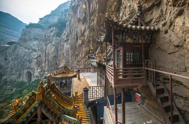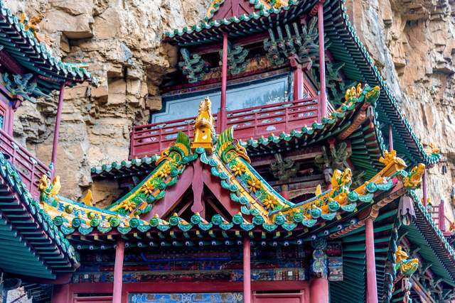 悬空寺像一件玲珑剔透的浮雕,镶嵌在万仞峭壁间,大有凌空欲飞之势。在此一游,真似置身九天宫阙,颇有腾云驾雾之感。