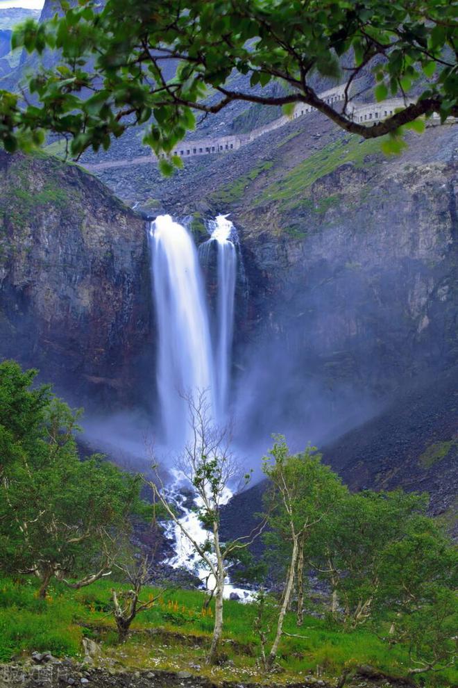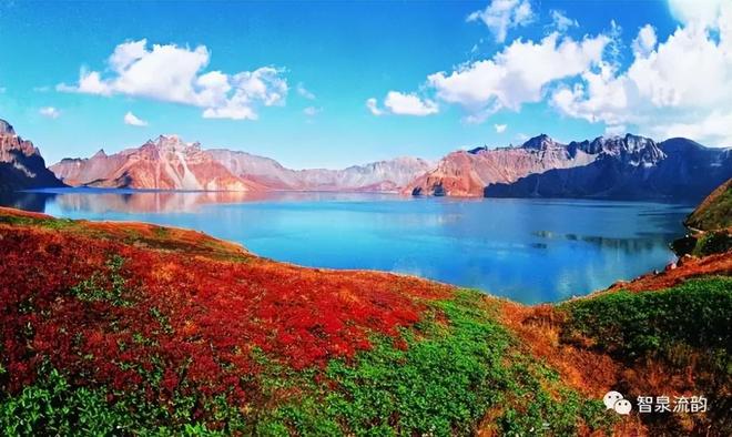 我们的汽车驶入长白山山门,隔窗望去,只见天地间似一雄伟莽龙横亘在碧雪之下,轻纱般的白云拂着她的面颊,湛蓝的天空映衬在她的身后,葱绿绵长的体态,显示出了这座高大山脉的雄姿和美容。她那常年积雪高插云霄的群峰,像集体起舞的朝鲜族少女的珠冠,银光熠熠;那色彩斑斓的山峦,犹如孔雀开屏,艳丽迷人。那万顷林海,波涛起伏,一浪高过一浪,一层叠上一层,极目远眺,波澜壮阔;昔日的火山口,如今是一泓碧水,悬于天际。迷人的传说引起我们无尽的遐想;银蛇般的瀑布,似飞舞的银蛇,轰雷喷雪,跌宕奔腾;山间幽静处,泉水叮咚,热泉可以煮卵,冷泉非常怡口,其乐无穷。密林间、草莽中、珍禽异兽各得其所;碧绿的山野果,奇花异草,争芳斗艳。无怪乎人们说:“长白山不是仙境,胜似仙境!”