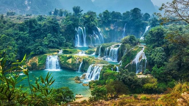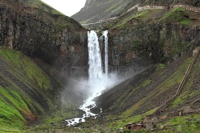 我们边说边来到了落差达68米的长白瀑布。站在“望瀑坡”,遥看长白瀑布,远远望去,似锦缎从天抖落,在阳光照耀下非常耀眼。飞瀑下落,袅袅娜娜,飘逸曼妙,煞是好看。离开“望瀑坡”,临近瀑布,则是另一番感受。但见瀑布激起的缕缕浪花,在阳光的照射下,发生折射和反射,水气弥漫,横空出彩虹,绚丽奇目,似虹霓霞雾、珠垂玉坠,令人叹为观止。来到瀑布旁边,可以听到瀑布的巨大吼声,好似千鼓齐鸣,万雷争吼,又像金戈互击、铁马互奔的声音,飞瀑溅起的缕缕水雾,仿佛是两军拼搏中扬起的阵阵烟雾。穿过缭绕的云雾,但见浪花翻滚,飞浪回溅,细雾蒙蒙,似雨雪交加,有“疑是龙池喷瑞雪”的妙景。停立瀑边,白云从身边绕过,眼望“高燕吻瀑”的壮景,仿佛置身于云天之外了。正如前人诗云: