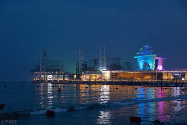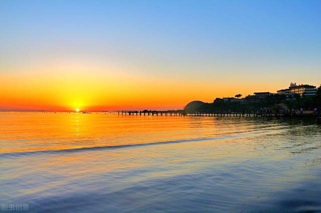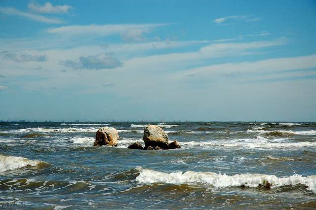 晚饭后,刚刚开完预备会,我就迫不及待地来到中海滩景区的老虎石看海。路上,农工党秦皇岛市委的孙才、薛伟同志向我们介绍道:北戴河是因戴河绕流其西而得名。这里的海岸弯曲,陆地茏葱,海水湛蓝,潮平浪静,沙软滩平,景观秀丽,环境幽静,气候宜人,是我国北方闻名遐迩的旅游和疗养胜地。北戴河海滨风景区,大约占地30平方公里。西起戴河口,东至狼牙桥,长约15公里。东部宽约3公里,西部宽约5公里为海滨地带。北倚燕山余脉,山上松柏常青,遮天蔽日,地上芳草茵茵,花木峥嵘。南临浩淼的渤海,白浪滔滔,碧波万顷,云帆飘渺。在青山脚下和山峦深处一幢幢幽雅的别墅,掩映在郁郁葱葱的绿树浓荫之中。