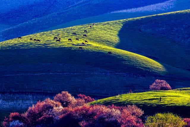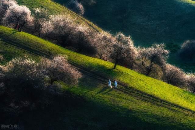 在伊犁河上,一叶小舟荡过,双桨拍打着河水,涟漪一层层扩散开去;远处,飘来了悠然自得的歌声,望着那柳搓金缕,花影摇摆、碧波荡漾的伊犁河,姑娘们陶醉了,沉吟于无限的温馨惬意之中……抬头望去,朵朵白云,座座青山,画面映在水中,闪烁着神秘诱人的光芒。河水如画师调成的五光十色的颜料,似溶未溶,朝水底沉去,深绿、深蓝、银白……姑娘伫立船头,借用大自然的美来陶冶自己的灵魂。夕阳西下时刻,只见西半天耀着一片绯红色的霞光,高楼远山,妩媚多姿,水面河岸,红波闪闪,金光熠熠。浩浩山川,滔滔伊水,都凝成了高亢激越的最强音:美哉,伊犁!