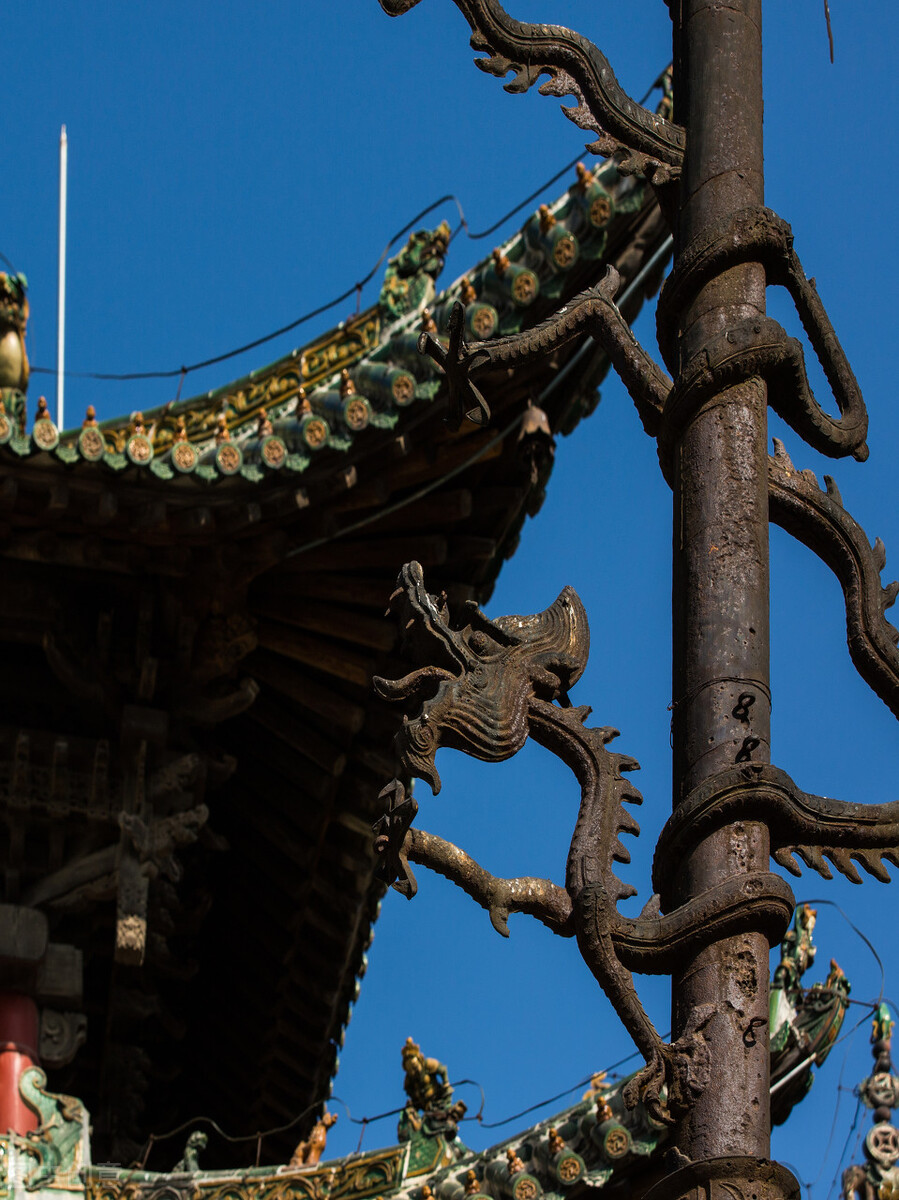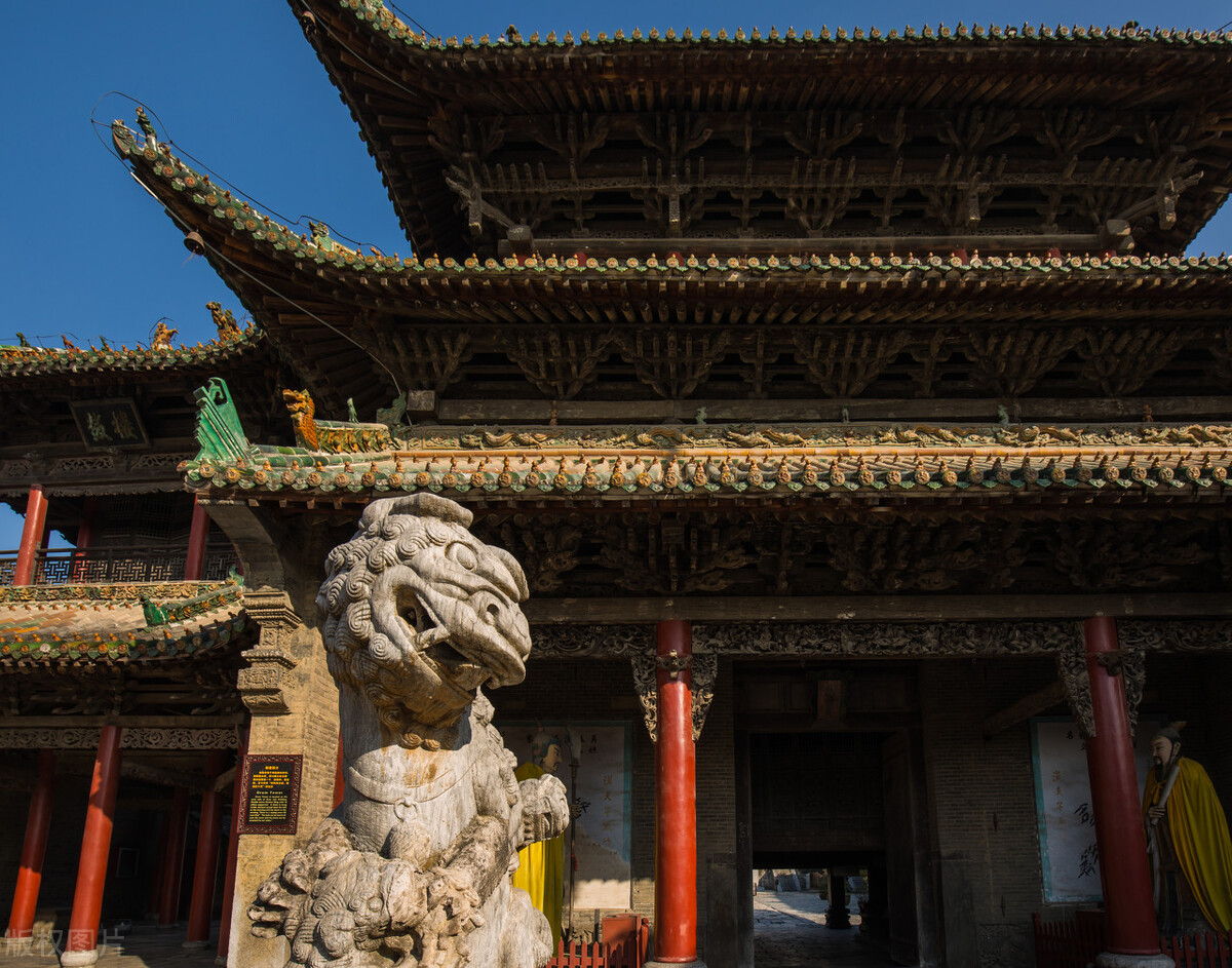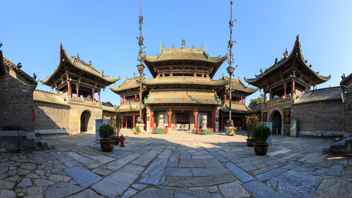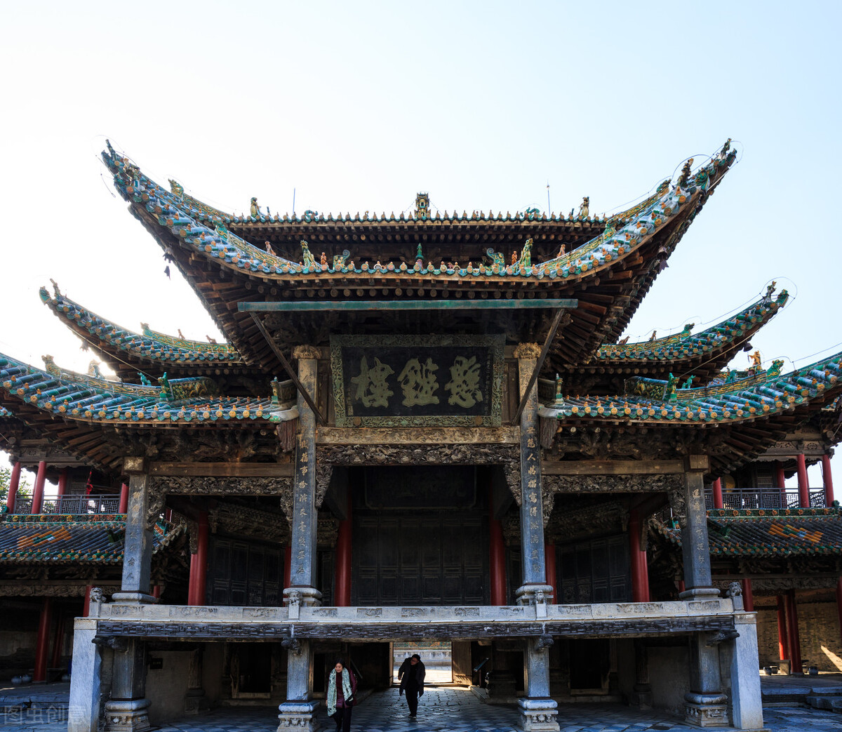 巍巍壮观的馆内悬鉴楼高八丈八,大拜殿楼高九丈九,春秋楼高十丈十,经嘉庆、道光、咸丰、同治至光绪十八年竣工(1892年),历时136年。当时,注重兴修水利工程的清朝政府,俨然把赊旗镇当作了今天的“经济特区”或“上海浦东”来开放和管理了,一个“南唐泌方百货厘金局”将周边南阳、唐河、泌阳、方城的税收工作全安排在赊旗镇衙内,美其名日:奉旨抽厘。可见,当年赊店在高层领导心目中占有多么举足轻重的地位。一个这样的风水宝地,就是当时社会经济的一个缩影,一面镜子。面对这面镜子,我们这些匆匆过客心中有何感触呢?