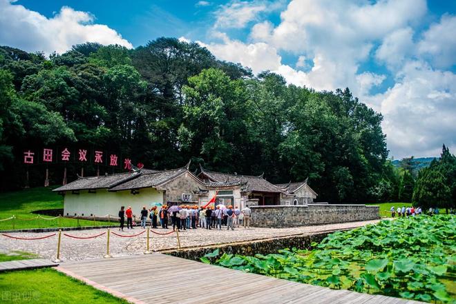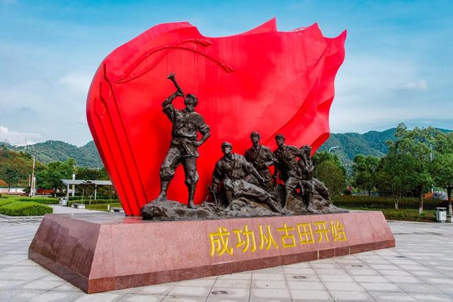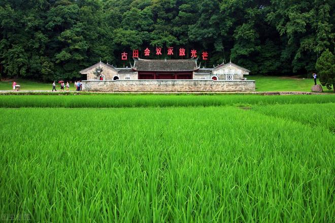 古田,福建省龙岩市上杭县境内的一个客家小镇。1929年12月,中国共产党红军第四军第九次代表大会在这里召开,史称“古田会议”。此次会议确立了“思想建党、政治建军”的原则。近年来,古田持续加大对古田会议会址等革命旧址群的保护与利用,传承红色基因、坚持绿色发展,推动乡村振兴。“古田会议永放光芒”中的古田会议就是在古田召开的,这次会议奠定了建党建军的基本原则,具有里程碑性质,所以有人说“古田会议是中国革命的里程碑”。
