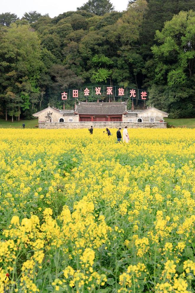 我坐进上杭至古田的班车,透过车窗,我看见了地里的油菜花已开的一片金黄了,不远处,山是连着山的,觉得比家乡的山还要大许多,多许多,还要葱翠许多。我正目不转睛地看着,就听到人们在喊:“古田到了,古田会议会址到了!”那声音是压抑不住的激动,我抬头看时,竟是一位留着短发的女孩,看样子只有十八九岁的样子。车还没停稳,人们都已经站了起来。